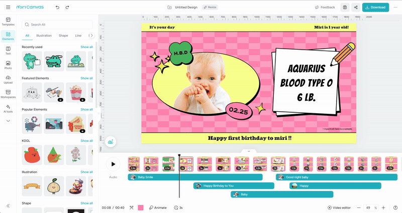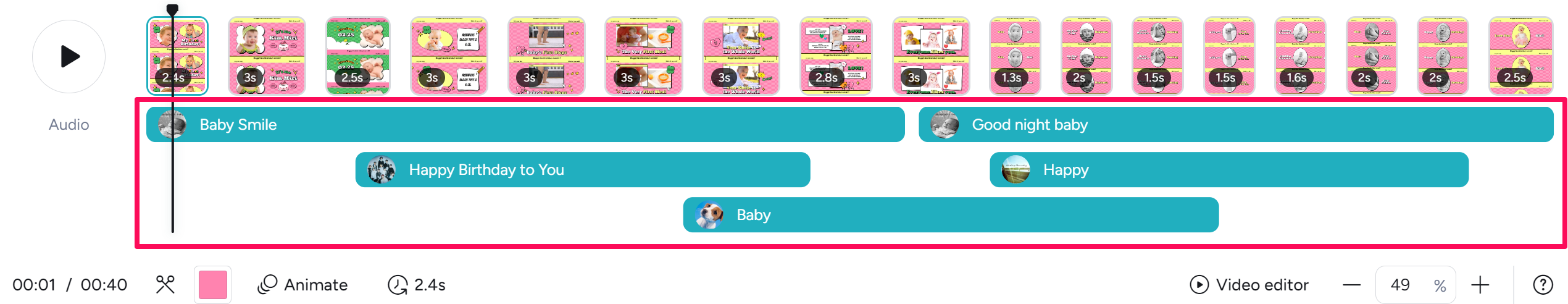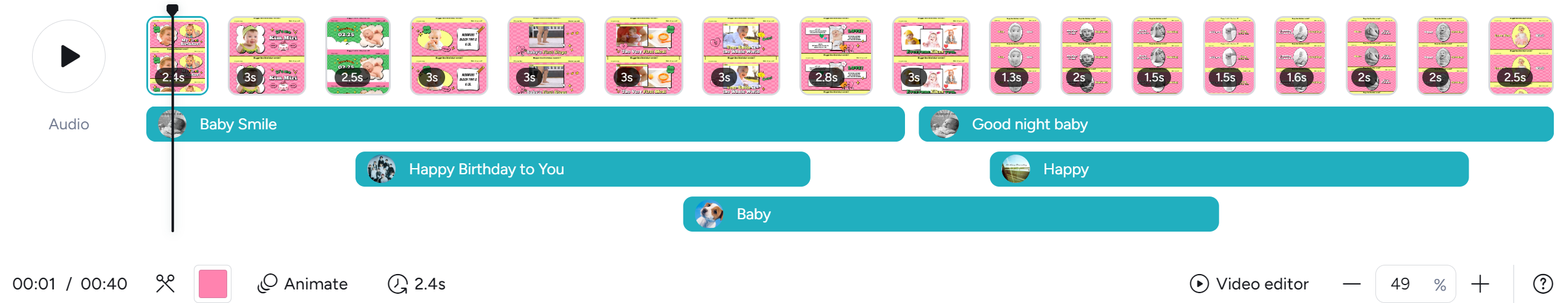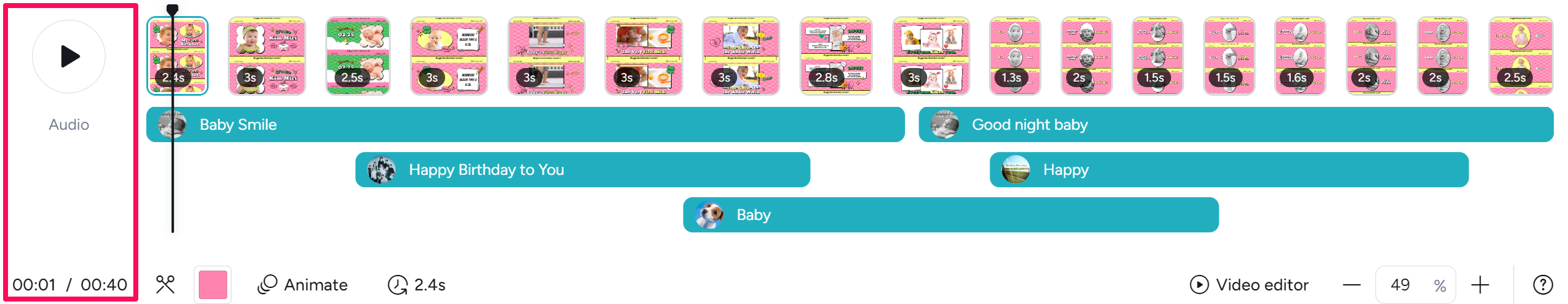 You can easily use page editing features such as adjusting playback time, duplicating, deleting, and adding pages, which are essential for video production. It also provides audio editing features.
