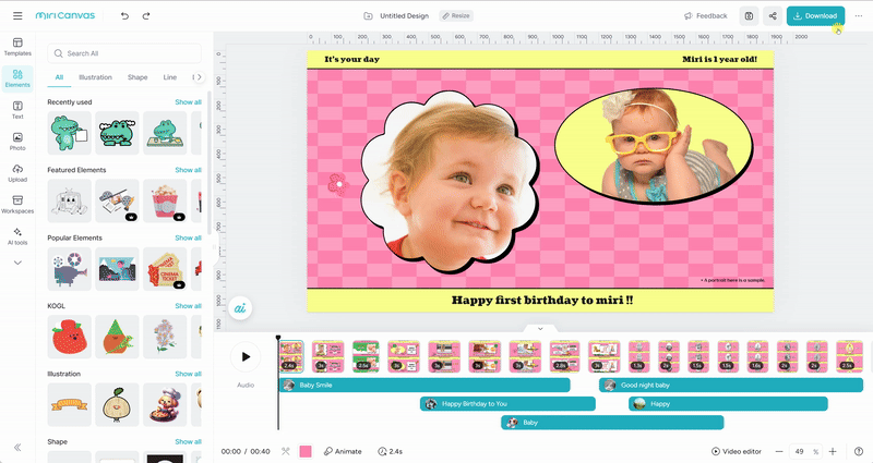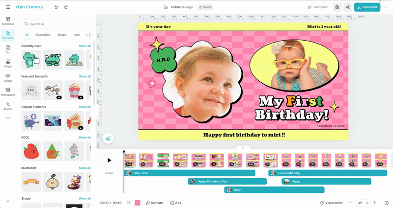 💡You can drag the CTI to your desired position, and you can also see the total playback time of the video and the CTI's current position!