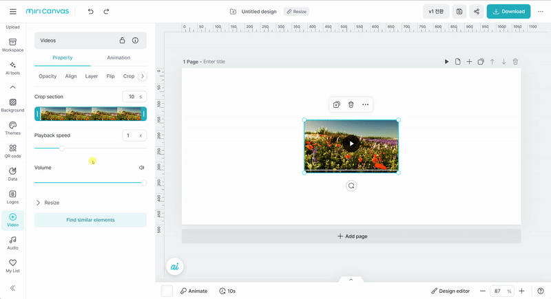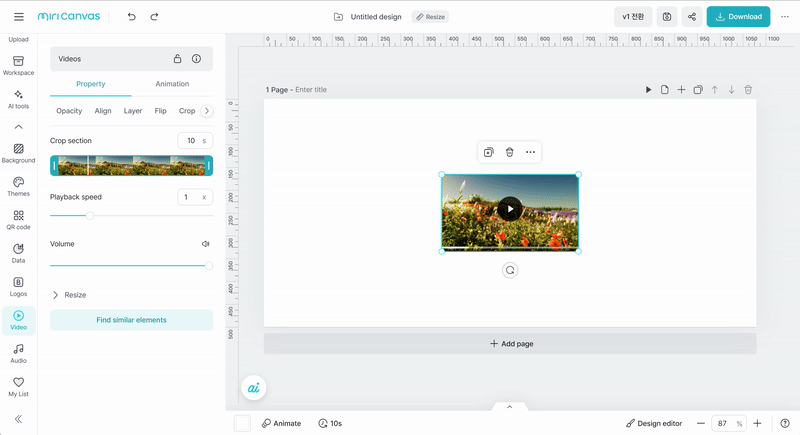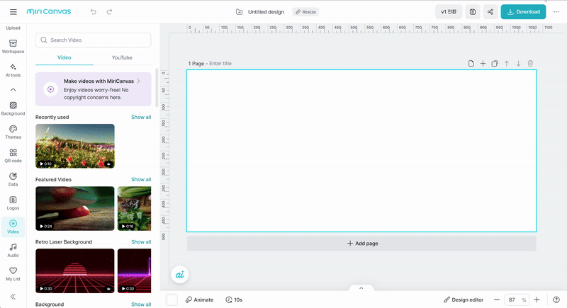 You can find videos provided by MiriCanvas in the [Video] menu on the left side of the editor.
