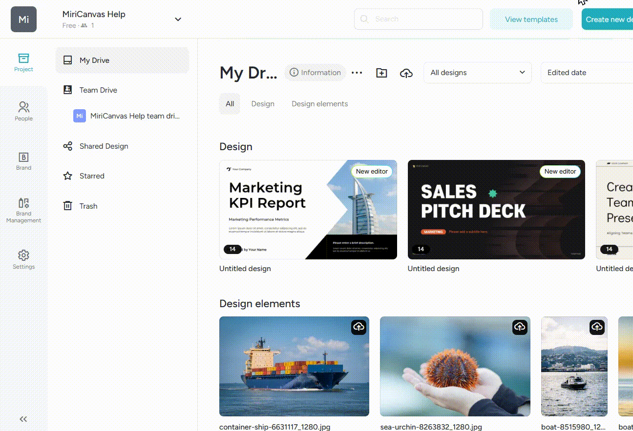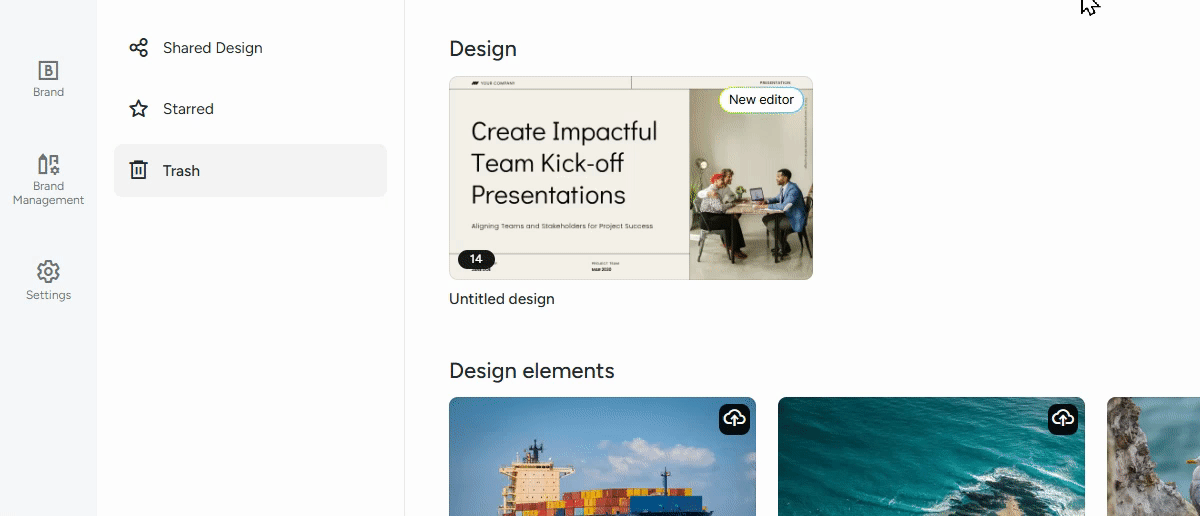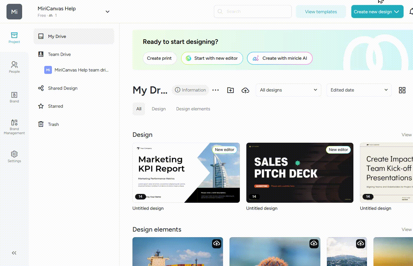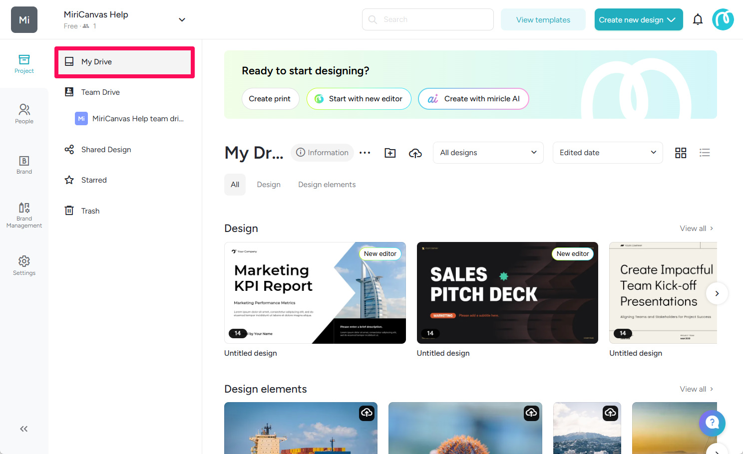 💡You can move to the workspace by selecting All Menu → My Design from the top left of the editor! |