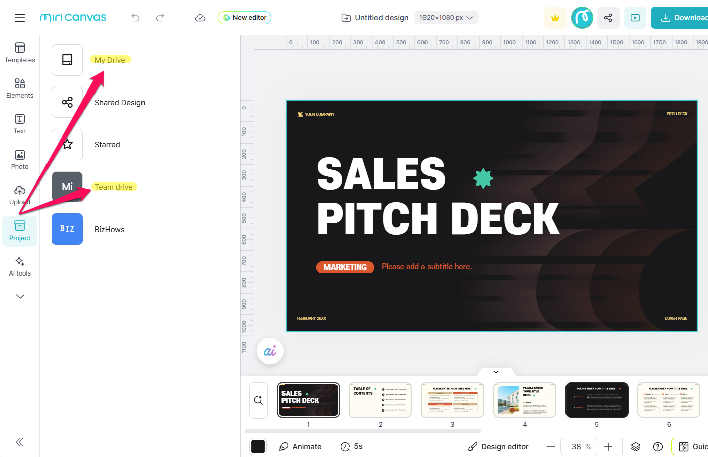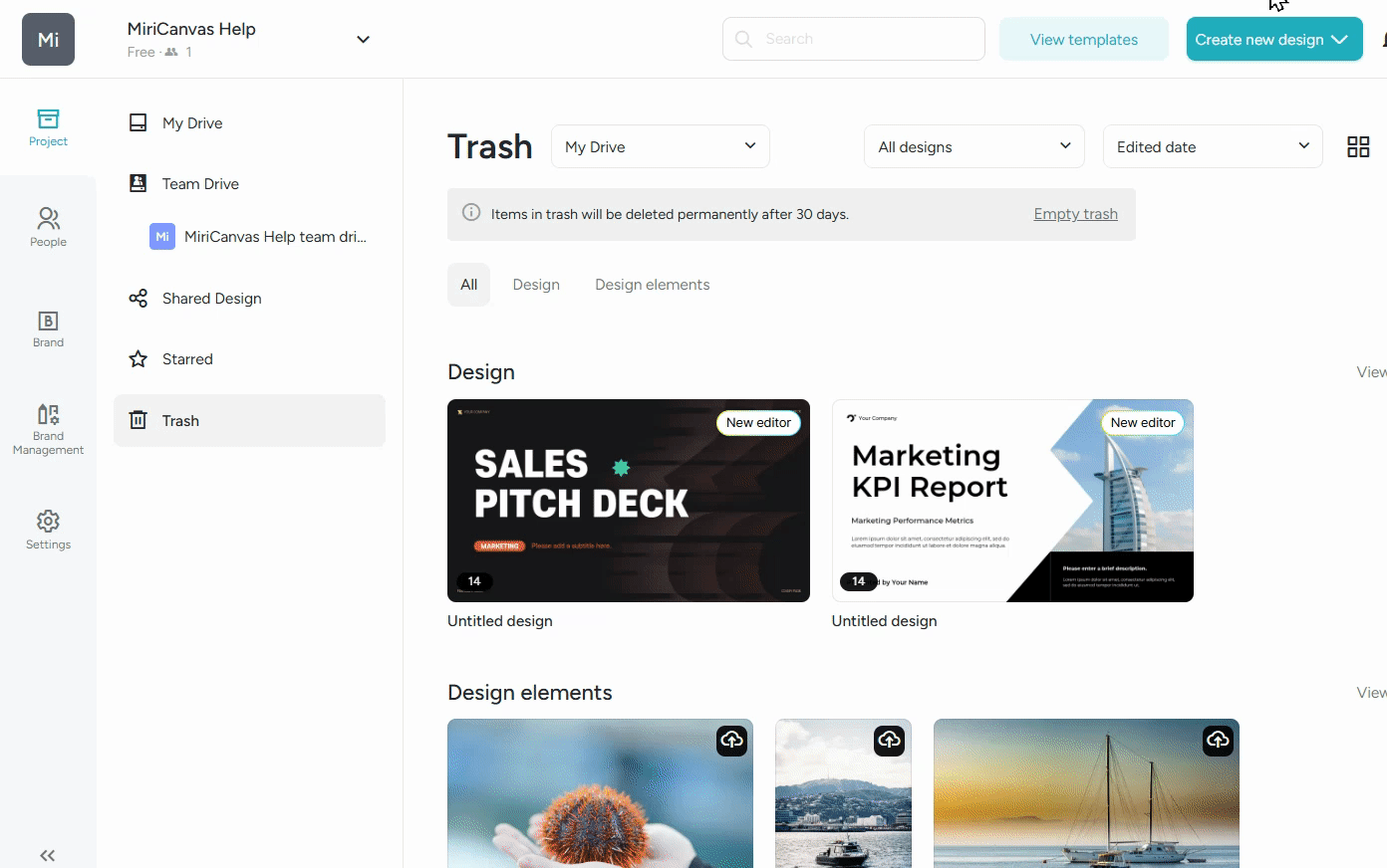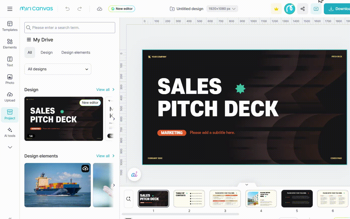 💡You can move to the workspace by selecting All Menu → My Design from the top left of the editor! |