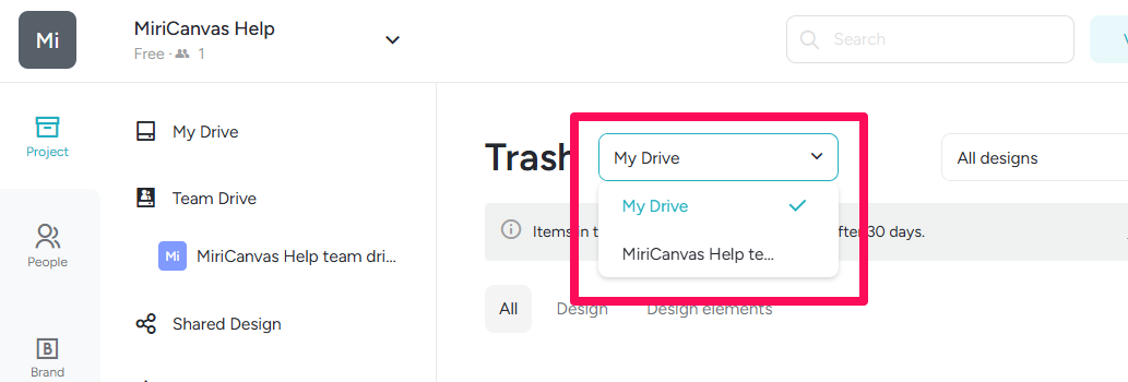 ② Select the location where the deleted items were stored — either My Drive or Team Drive.