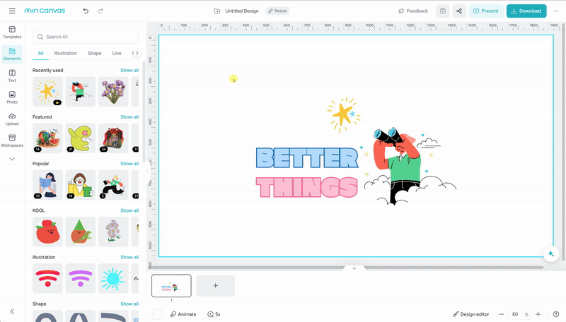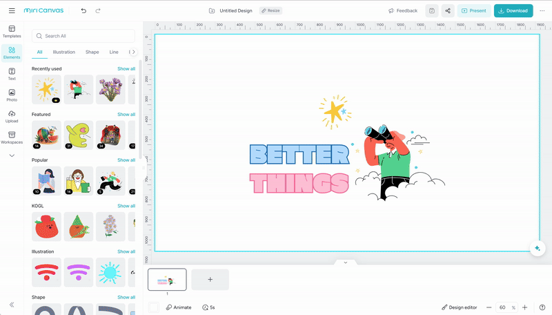 1. Create a composite element in the editor by using elements and text, and then set it as a group.