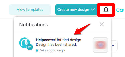 3️⃣ When a design is shared, the invited member will receive a notification either via the bell icon (Notifications) in their workspace or via email, so please make sure to check.