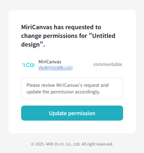Click [Update permission] in the email, or recheck the sharing settings in the design.