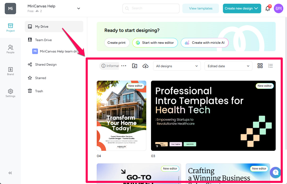 ▶️To prevent designs stored in the 'My Drive' of a member scheduled for removal from being deleted, please move them to another space in advance.