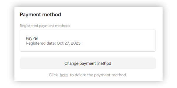 After registering a payment method, you can click the “Change Payment Method” button to switch to a different payment method.