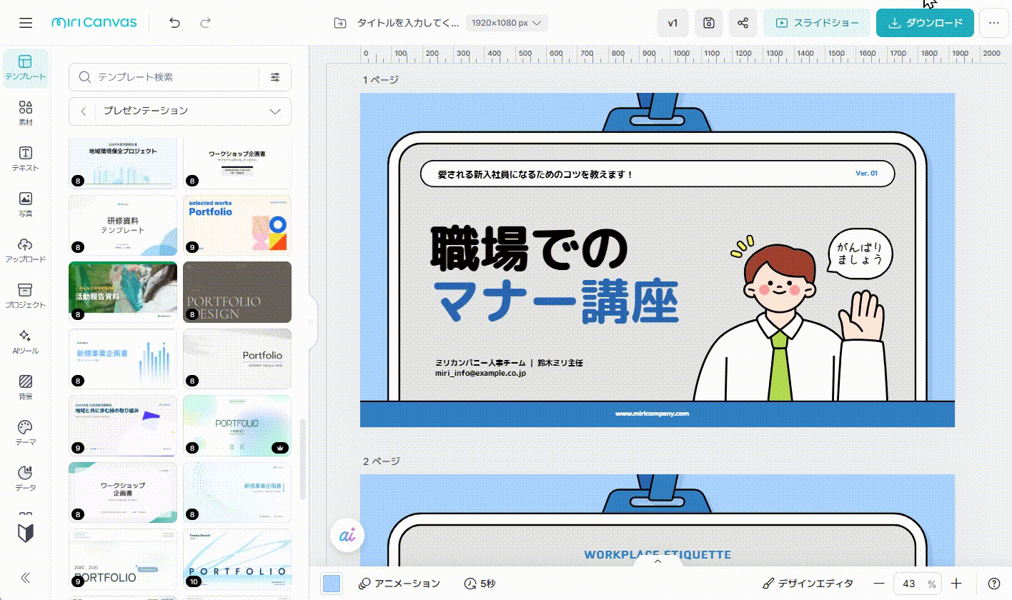 「未対応の素材」は削除もしくは別の素材に置き換えてから、もう一度保存やダウンロードを行ってください。