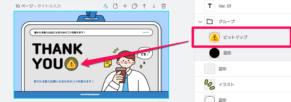 「レイヤーの順序」をONにし、エディター右側のリストでビックリマークが表示されている素材がないか確認してください。
