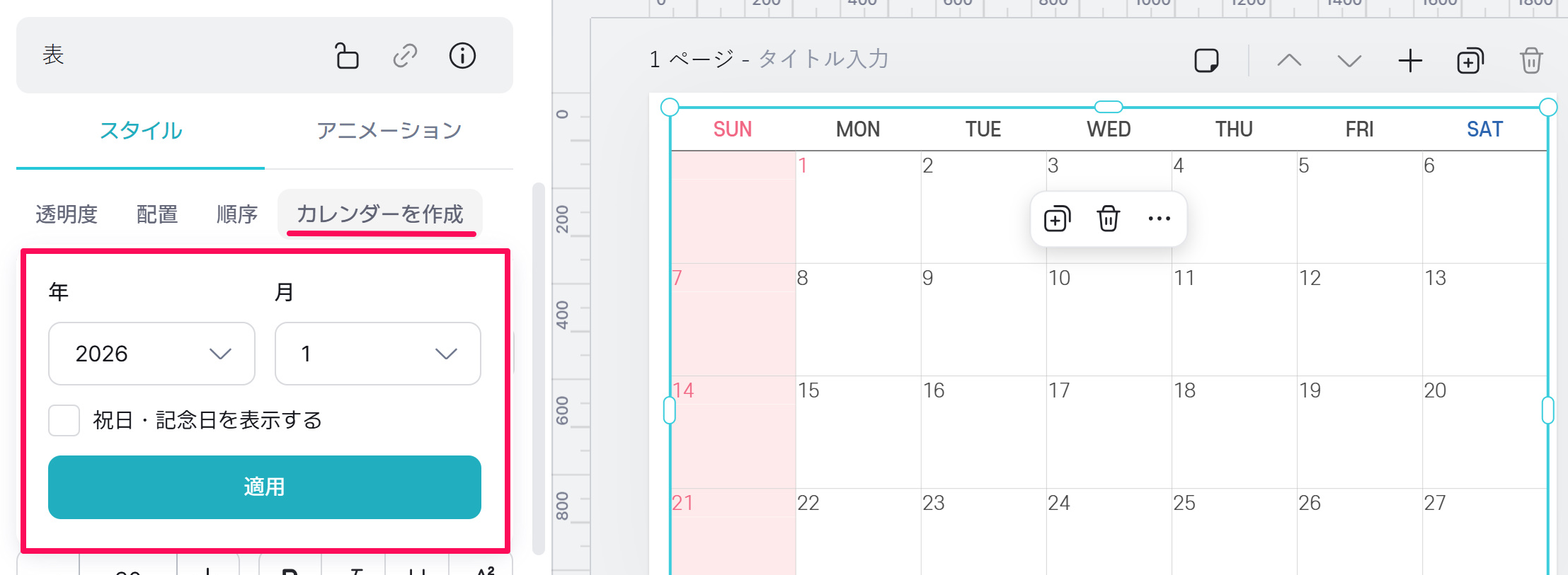 また、左側の設定パネルの「素材サイズ入力」メニューでも調整が可能です!