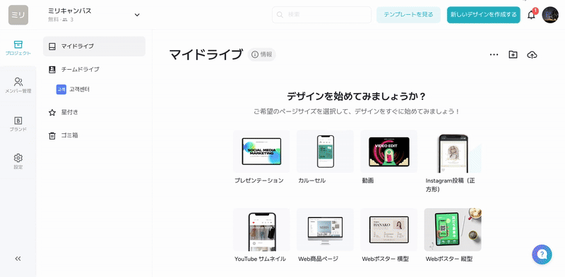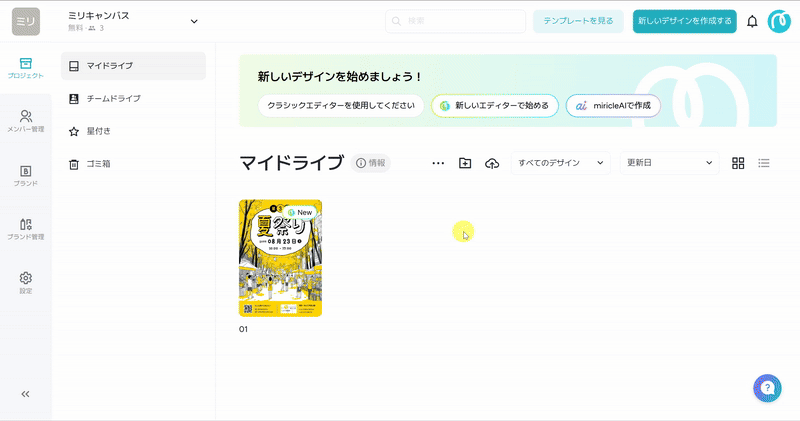 「マイドライブ」や「チームドライブ」に保存されたデザインを、一緒にリアルタイム編集してみましょう!