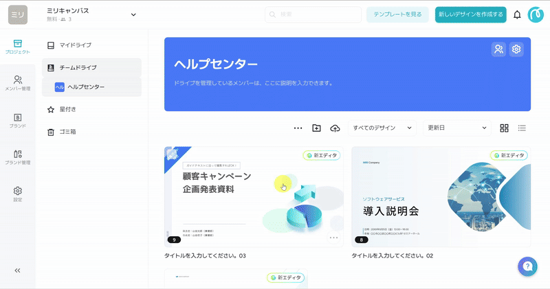 アクセスおよび編集権限を持つメンバーは、「チームドライブ」に保存されたデザインを自由に閲覧・編集できます。