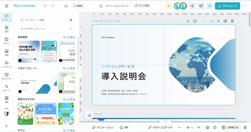招待リストより対象のデザインをクリックすると編集画面にアクセスでき、他のメンバーの編集の様子もリアルタイムで確認可能です。