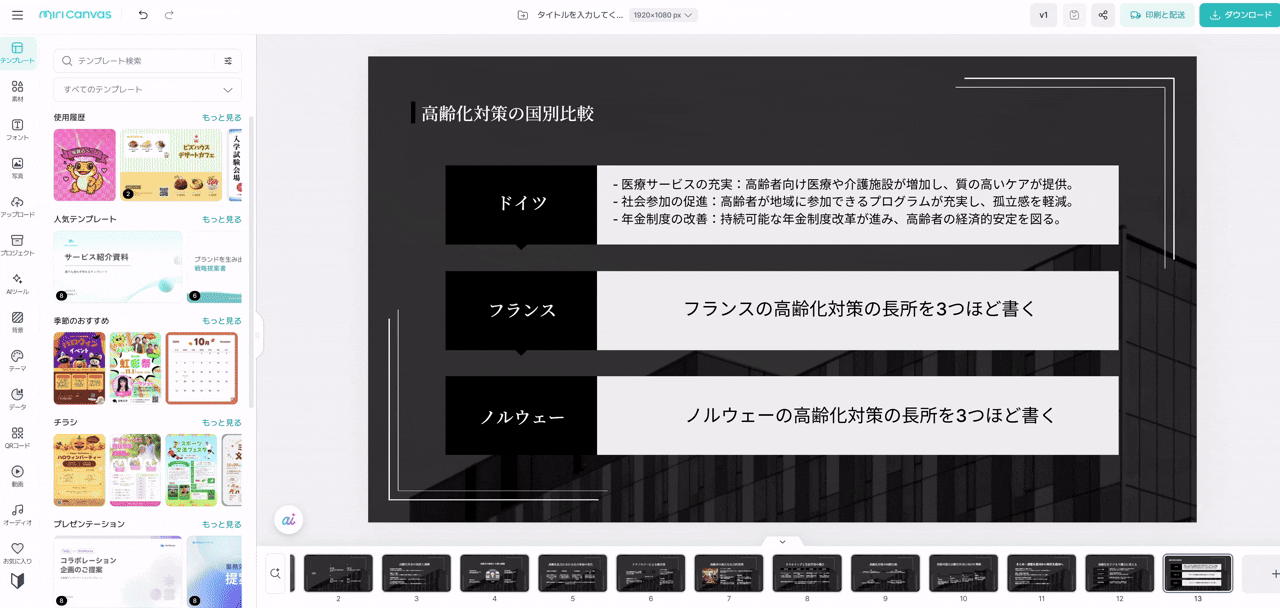 👉 MiriCanvasのAI機能をフル活用し、最高のプレゼンテーション資料を作りに行く!