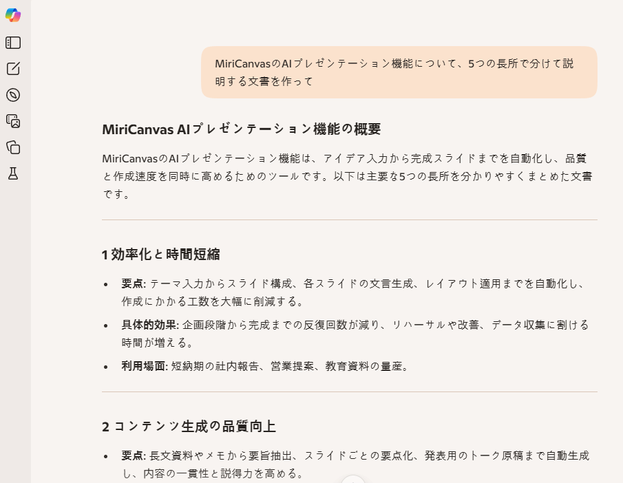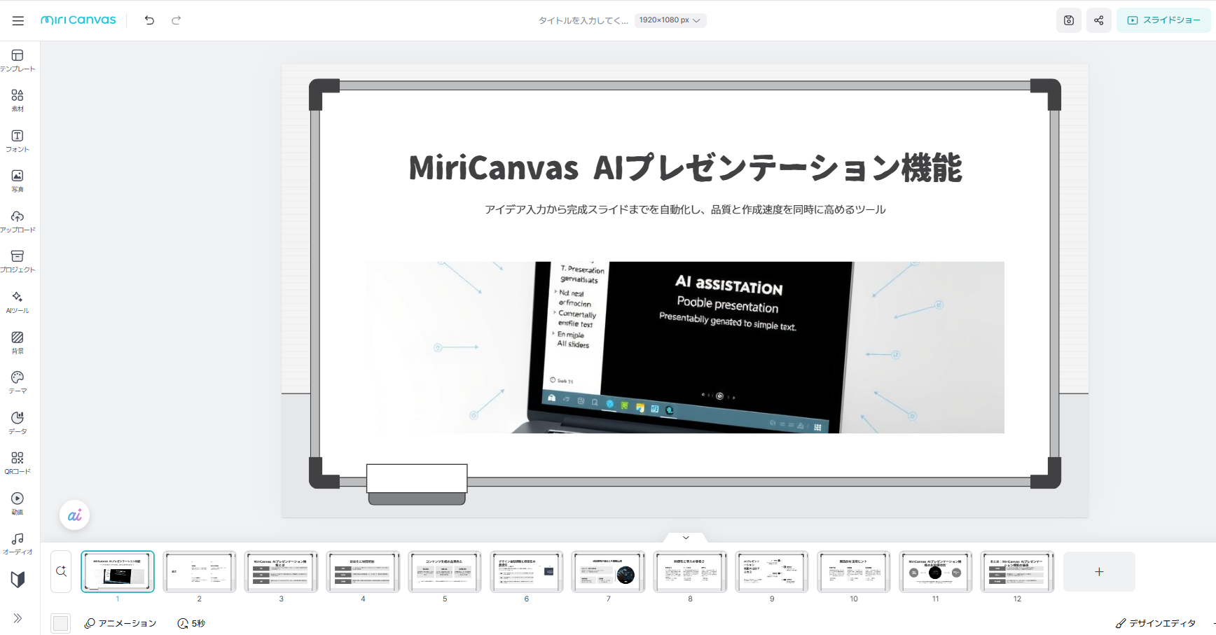 MiriCanvasのAIプレゼンテーションを利用すれば、手間のかかるプレゼン資料を瞬時にAIで自動生成できます。