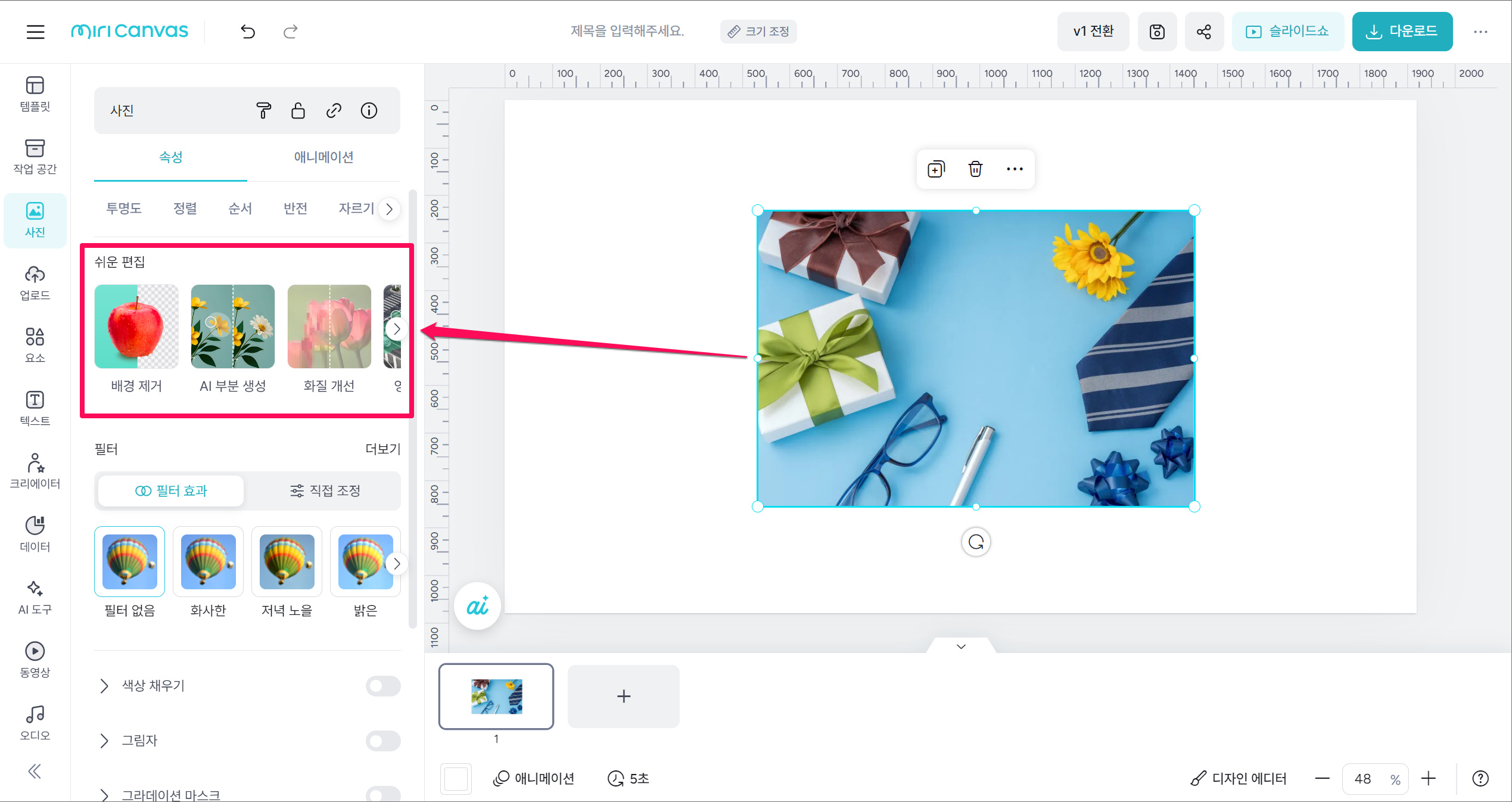 배경 제거, AI 부분 생성, 화질 개선, 영역 지우개 기능을 사용하는 방법을 알려드릴게요!😊