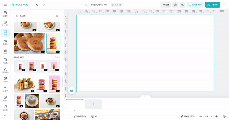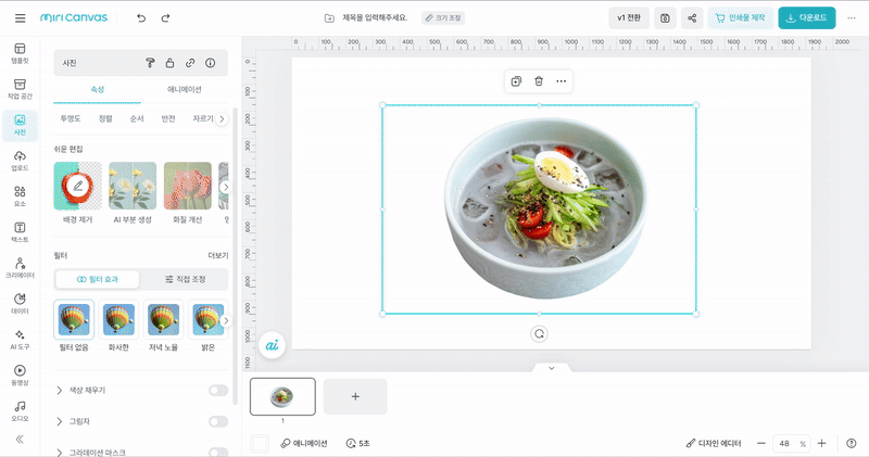 직접 업로드한 사진이나 미리캔버스에서 제공하는 사진을 편집할 수 있는 기능이 있어요.