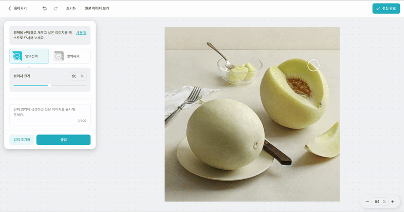 사진의 일부분을 AI로 변경해주는 기능이예요.