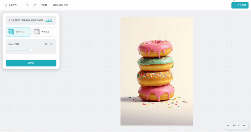 2. 지우고싶은 영역을 선택하여 지운 후, [편집 완료] 버튼을 클릭합니다.