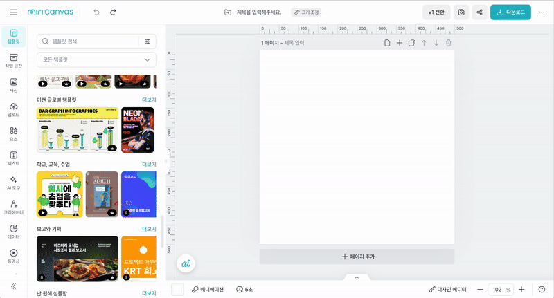 템플릿을 더 쉽게 편집할 수 있도록 사이즈 그대로 불러오는 '이 템플릿으로 덮어쓰기' 기능을 알려드릴게요.