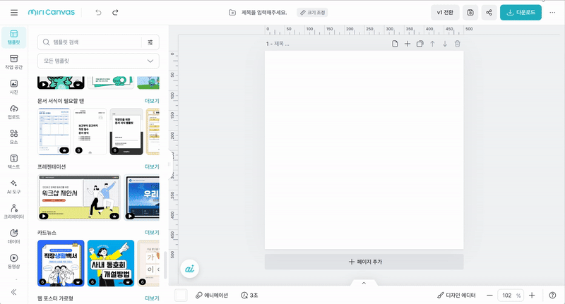 1️⃣원하는 템플릿 섬네일에 마우스 올리기