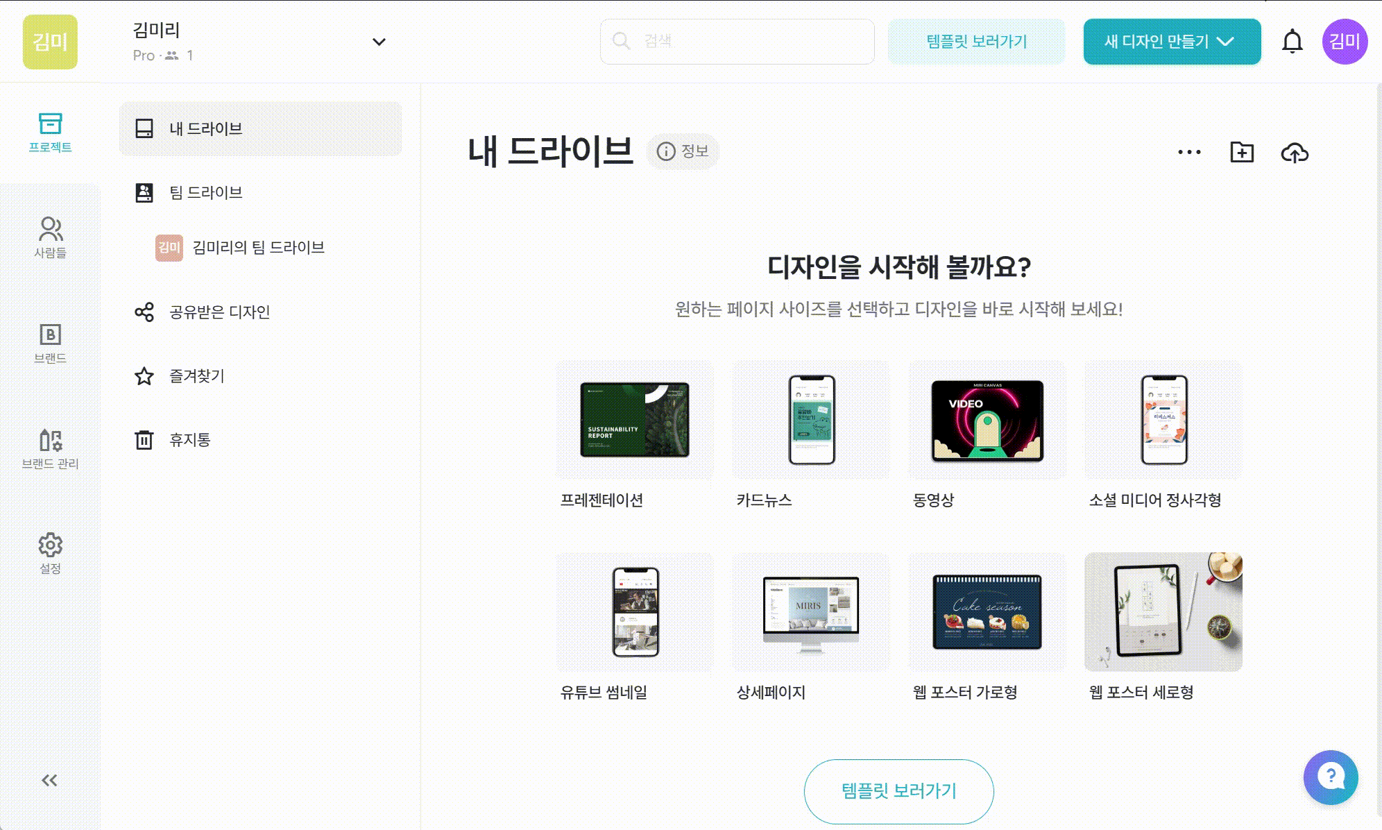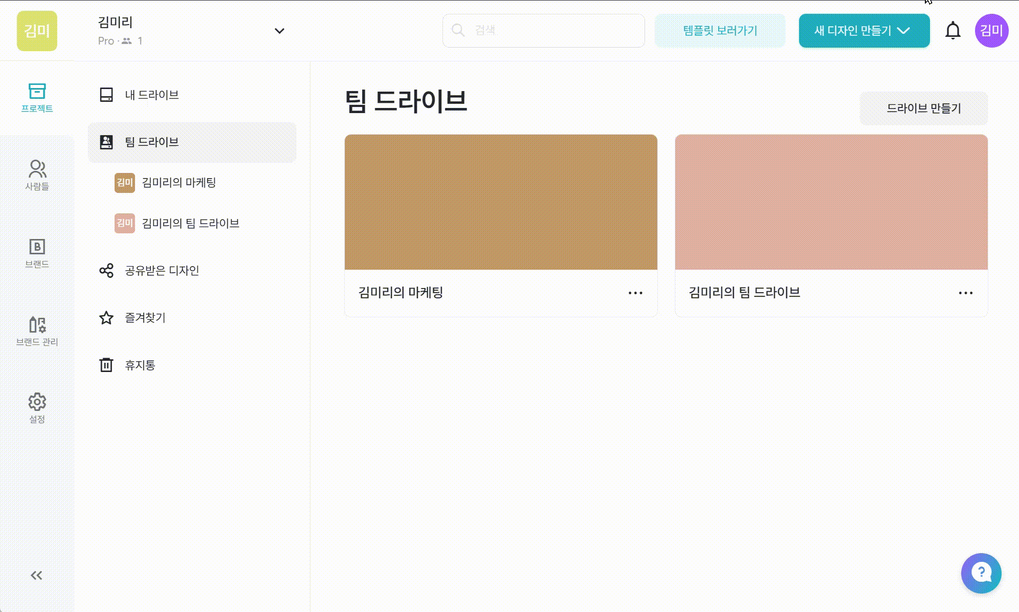 단, 폴더 생성 및 폴더별 디자인·요소 관리는 팀 드라이브 관리자 또는 관리 가능 역할을 가진 멤버만 가능해요.
