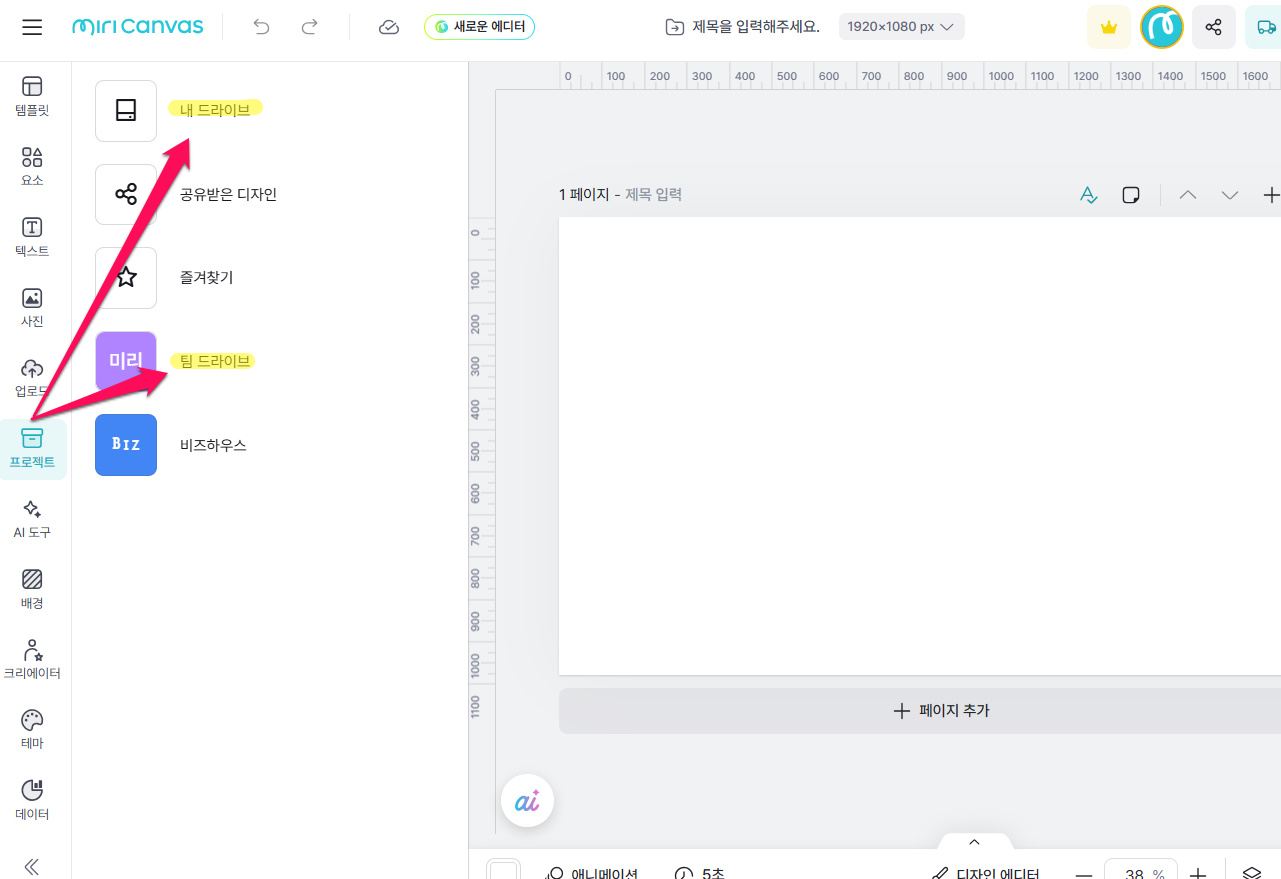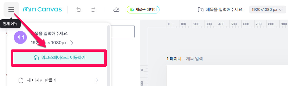 💡에디터 왼쪽 상단의 [ 전체 메뉴 → 워크스페이스로 이동하기 ] 순서로 워크스페이스 이동이 가능해요! |