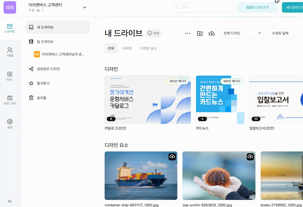 삭제하려는 디자인 문서와 요소는 먼저 휴지통으로 이동해야 해요.