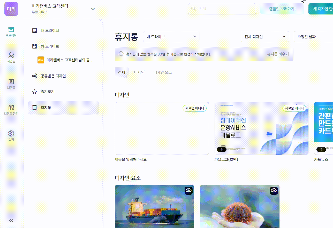 - Q. 실수로 디자인 문서(또는 요소)를 휴지통으로 이동했어요.