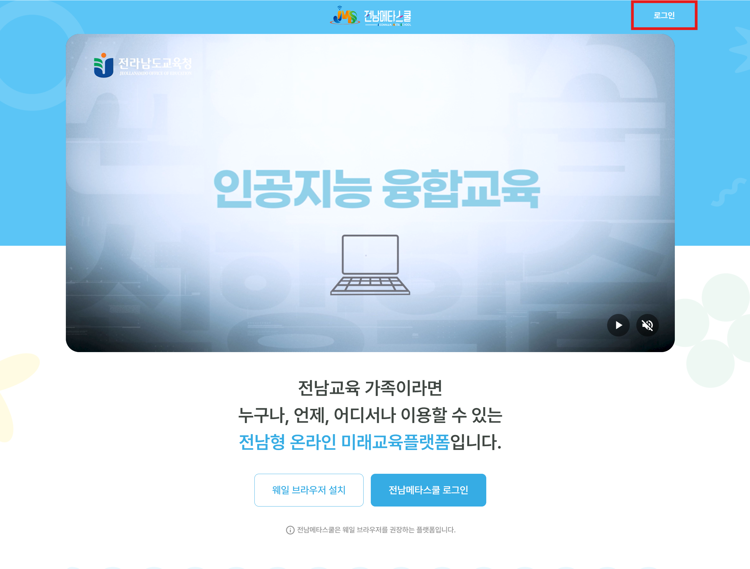 1.전남메타스쿨에 접속해 상단 오른쪽 로그인 해주세요.