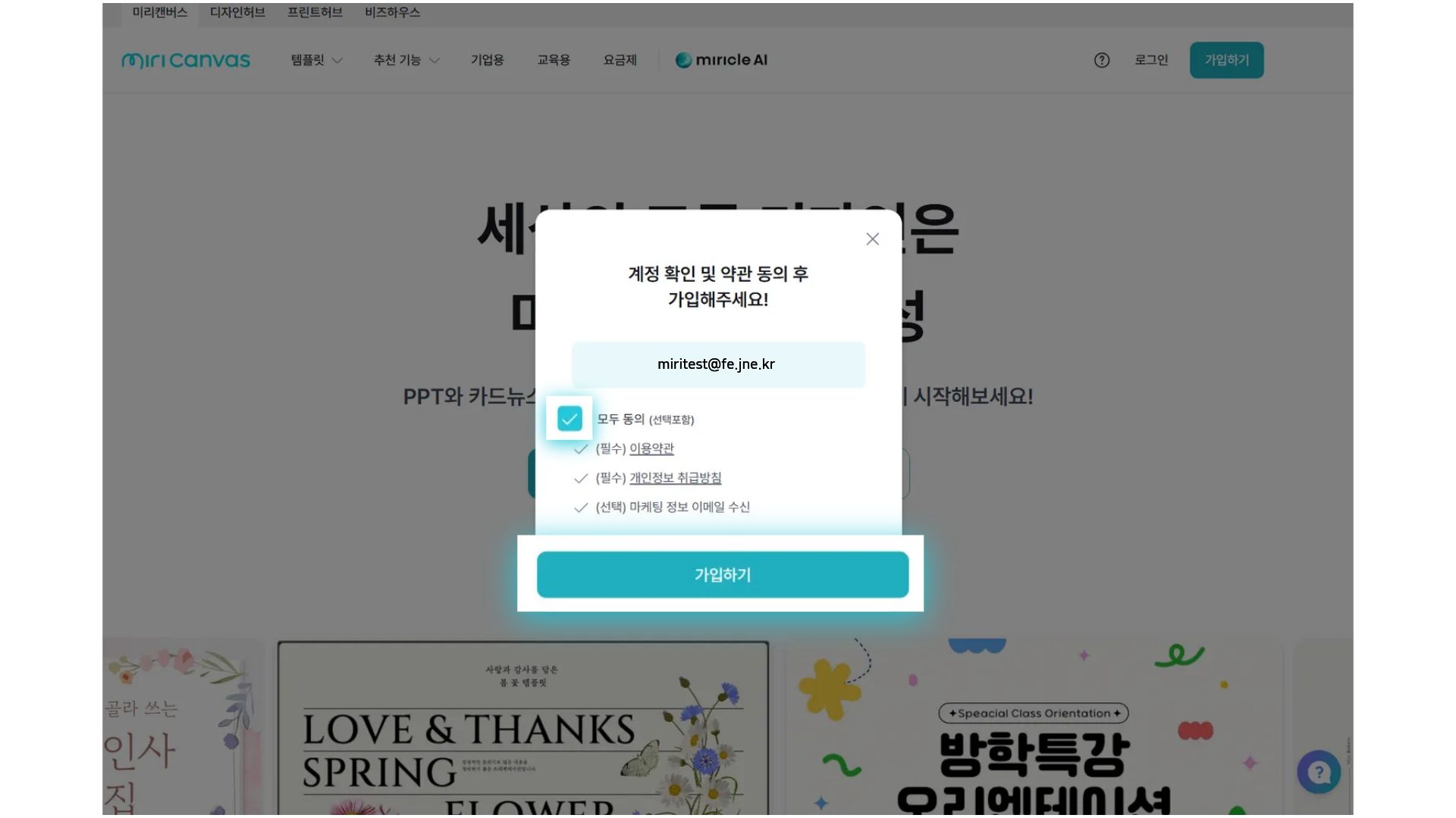 *️⃣미리캔버스 신규 가입자 교육용 Pro 무료 이용 방법