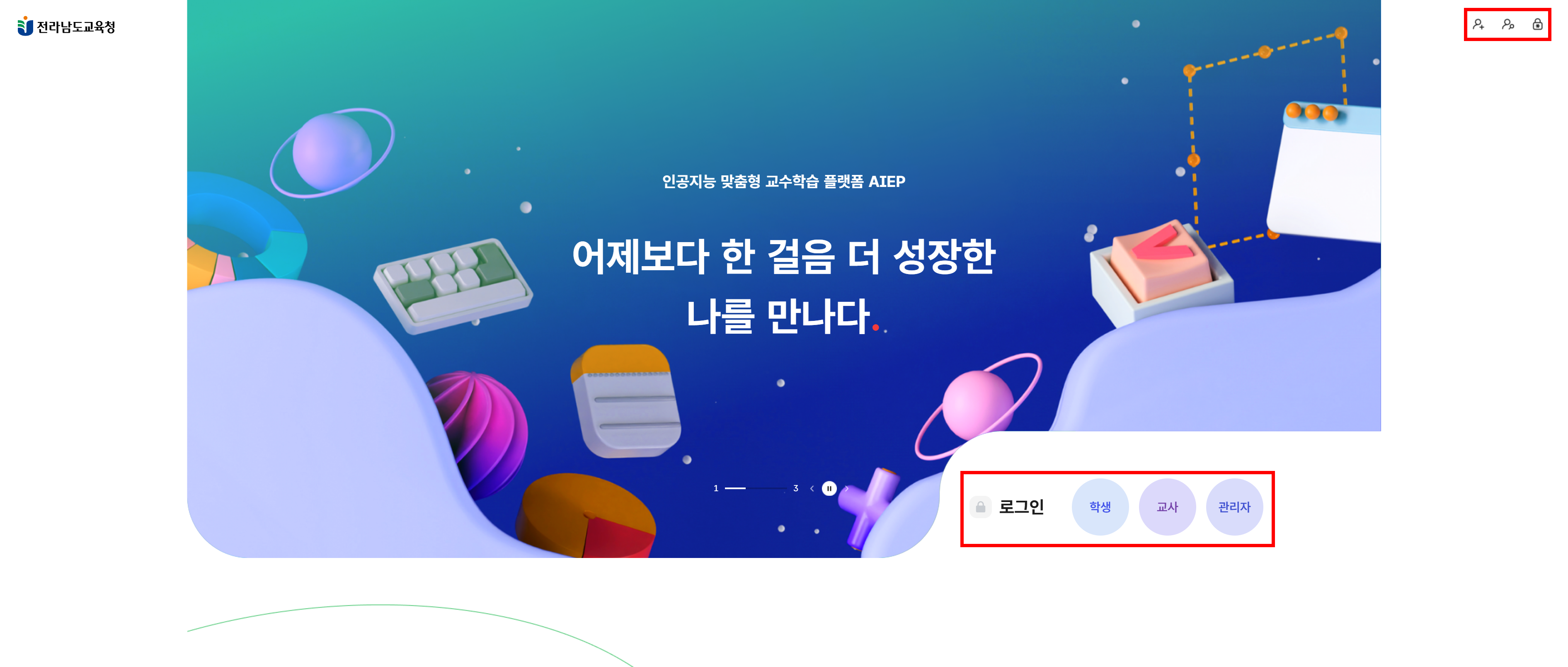 1. 전남교육청 아이모두에 접속해 상단 오른쪽에 있는 로그인 해주세요.