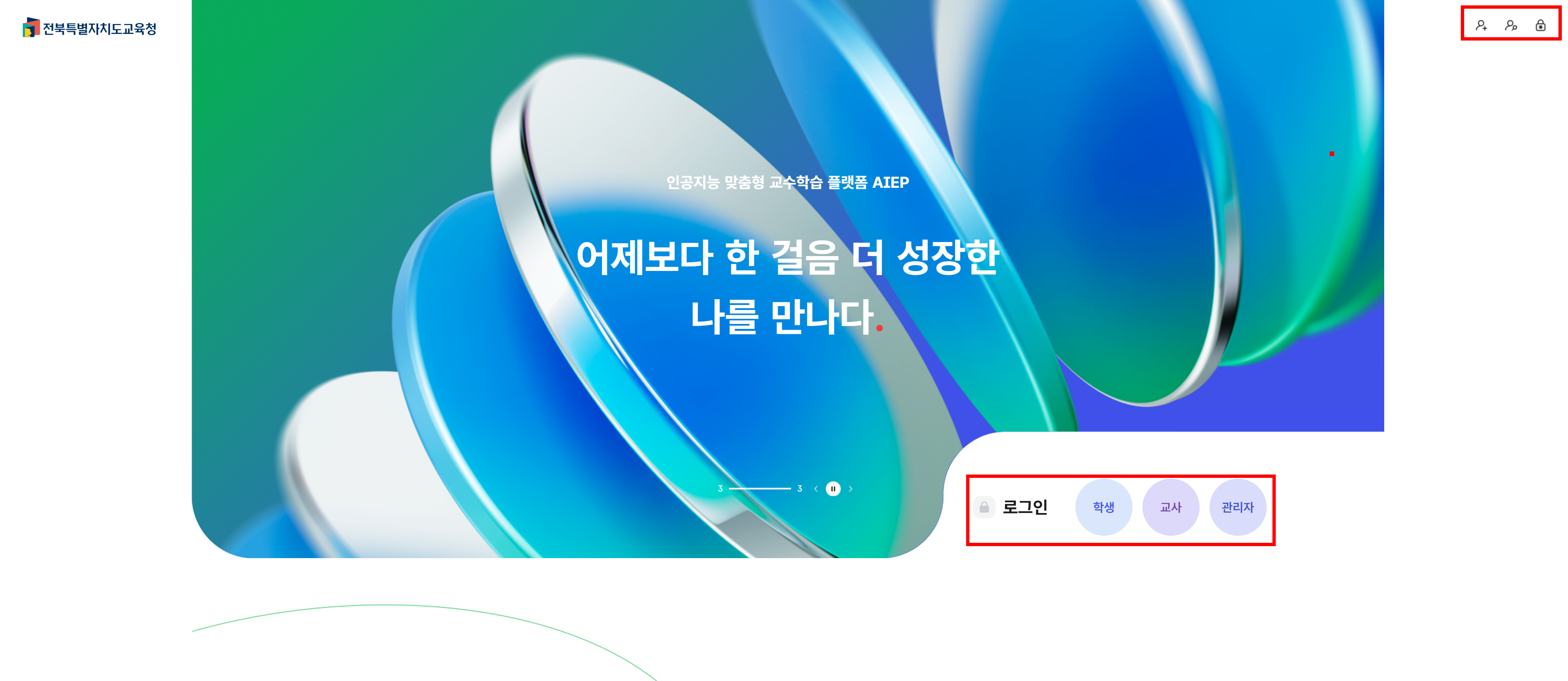 1. 전북특별자치도 교육청 전북 AIEP에 접속해 상단 오른쪽에 있는 로그인 해주세요.