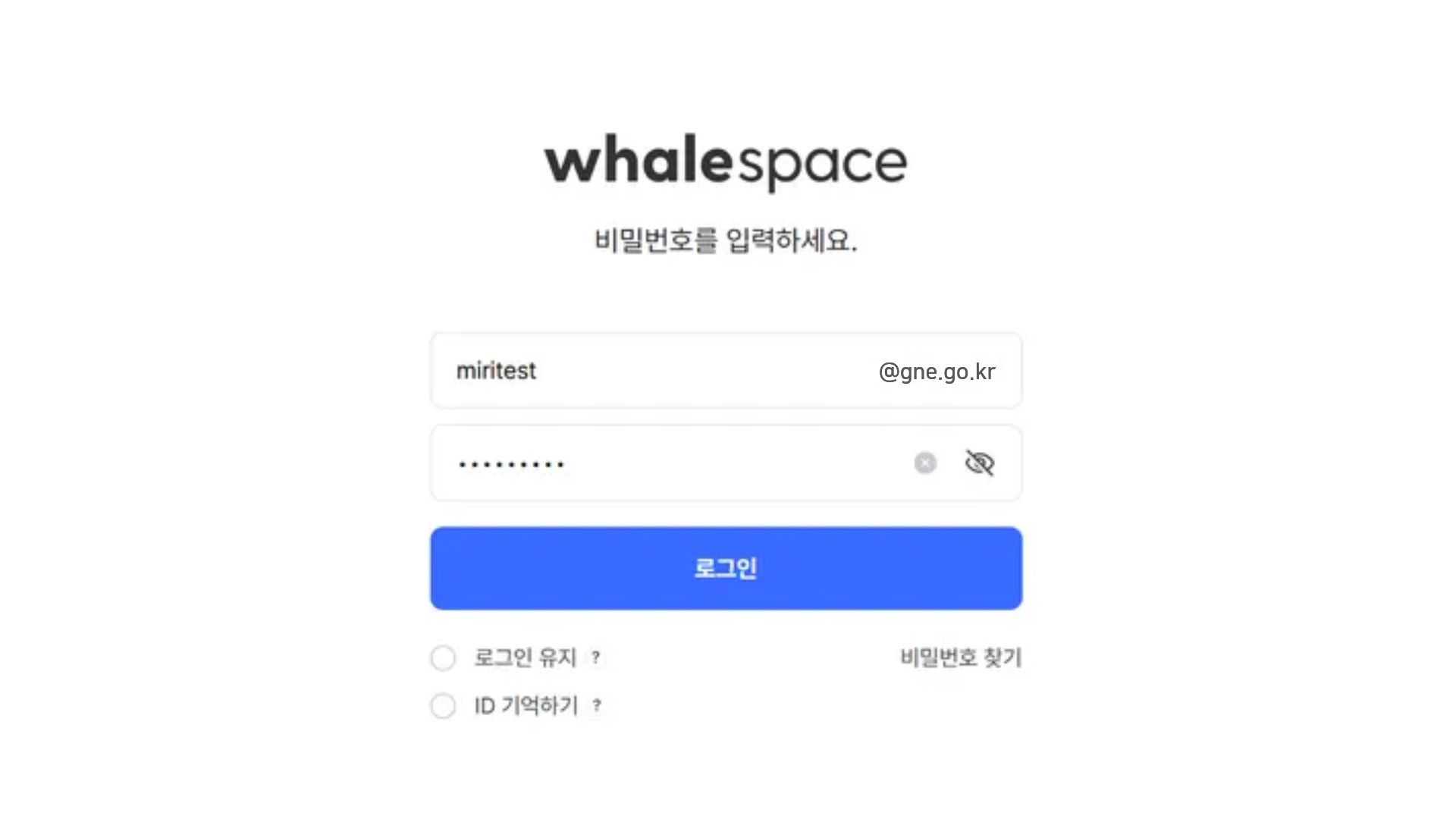 3. 웨일 스페이스 로그인 창에서 @gne.go.kr 로 로그인 해주세요.