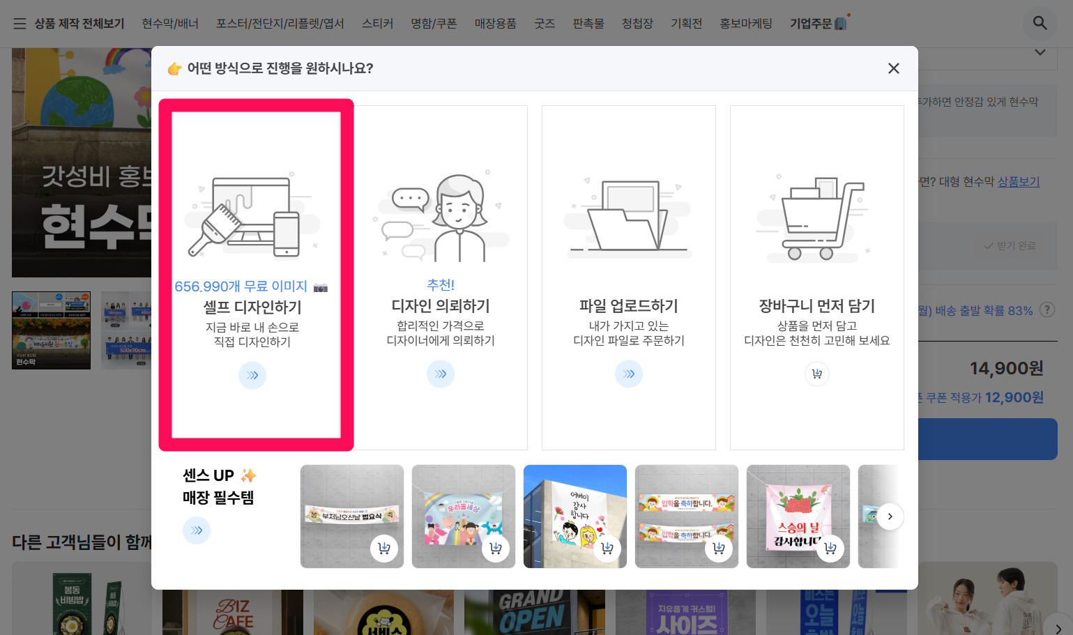 ③팝업창에서 '셀프 디자인하기'를 클릭해 주세요.