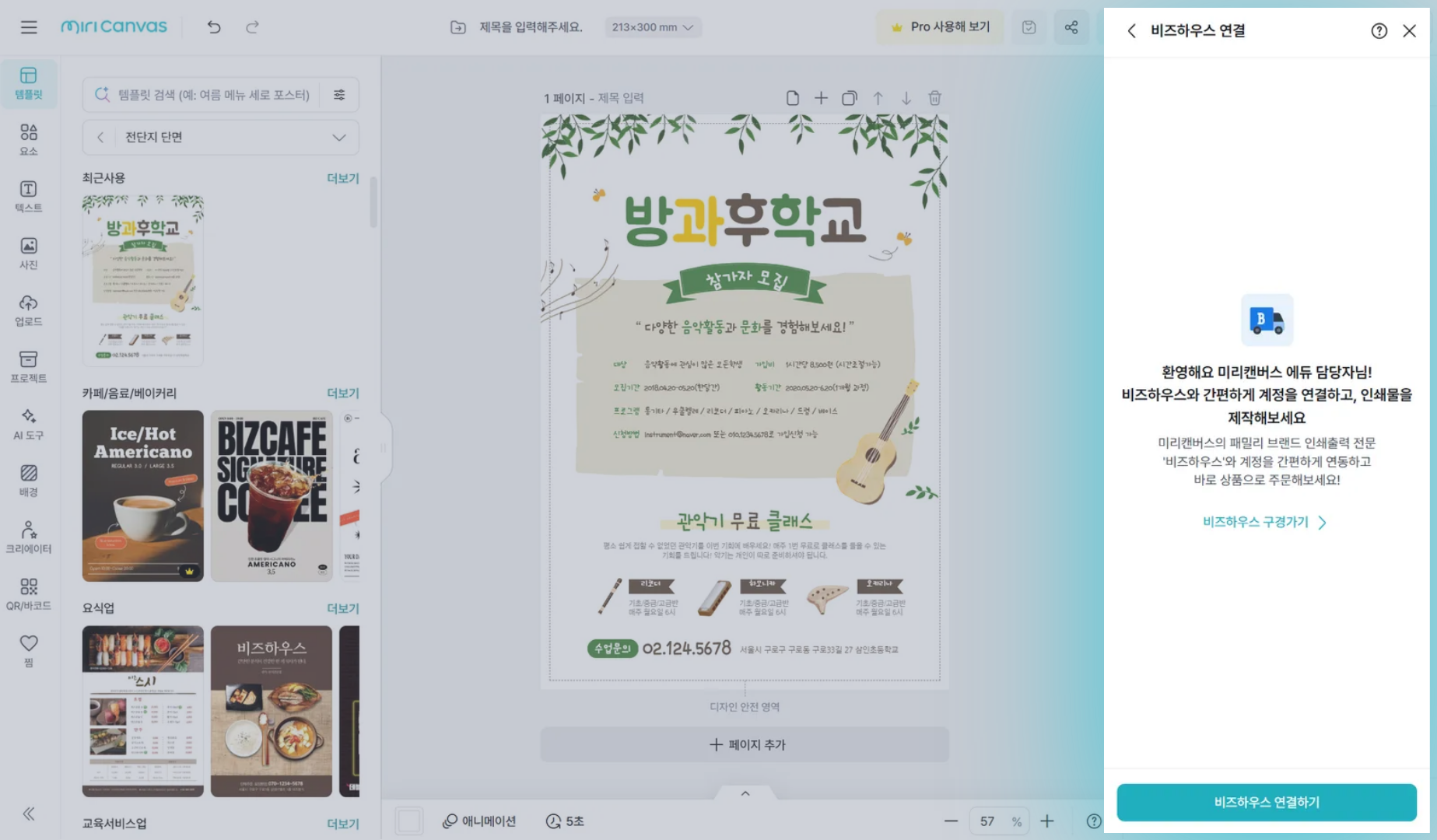 위 과정을 통해 미리캔버스와 비즈하우스를 연동하여 편리하게 이용하실 수 있습니다.