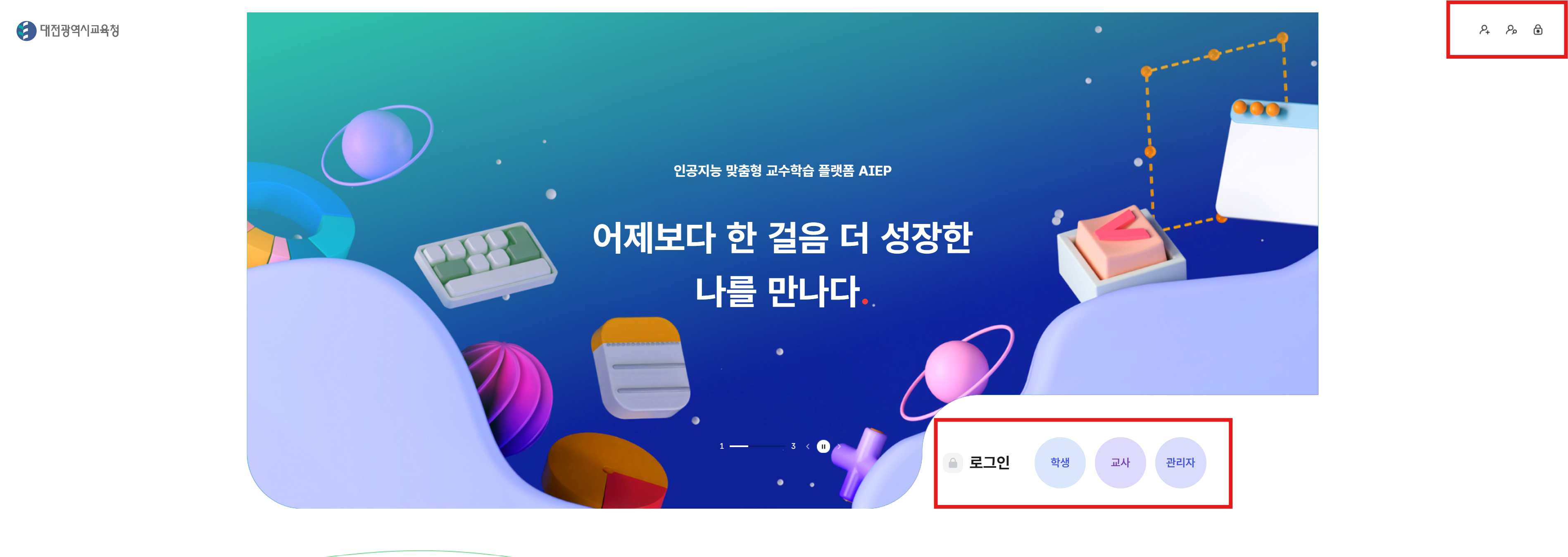 1. 대전광역시 교육청 대전 AIEP에 접속해 상단 오른쪽에 있는 로그인 해주세요.