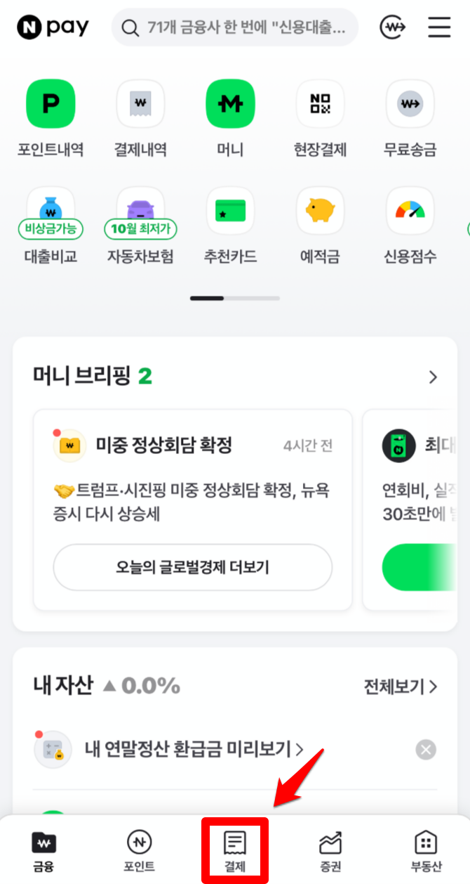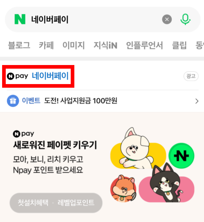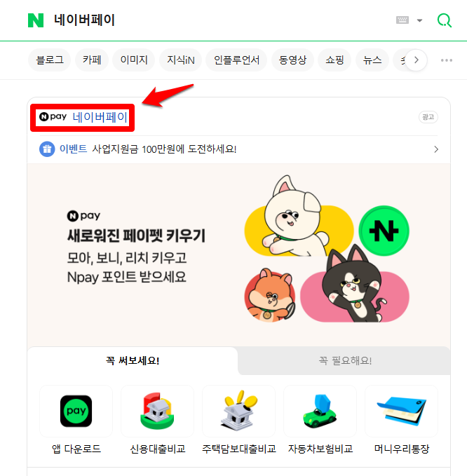1️⃣ 네이버에서 "네이버페이"를 검색해 접속해 주세요.