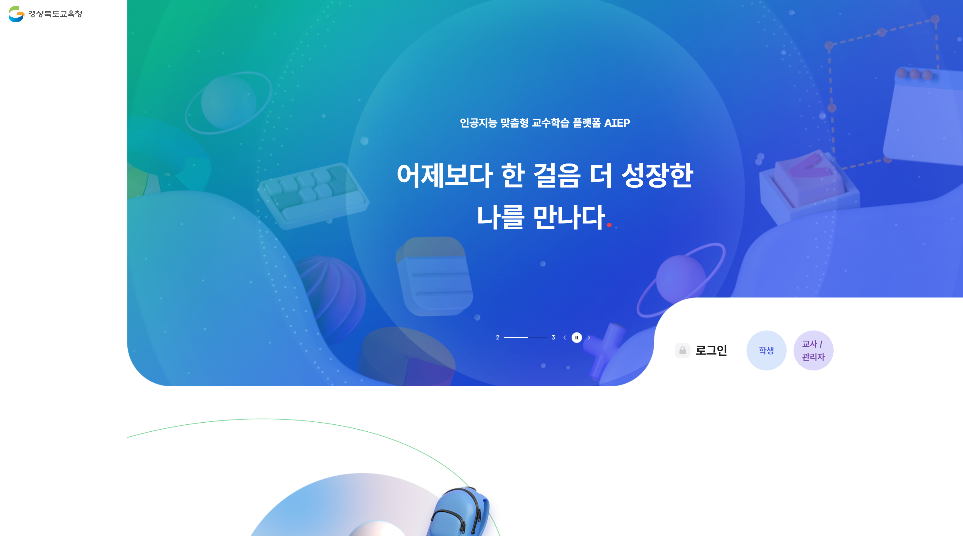 1. 경상북도 교육청 경북 AIEP에 접속해 중앙에 있는 교사/관리자로 로그인 해주세요.