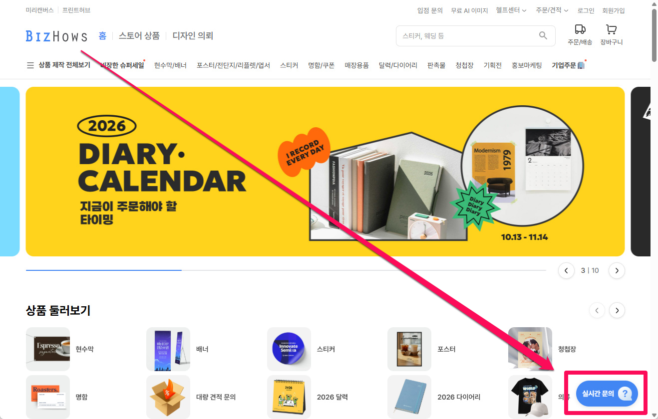 인쇄물 제작은 패밀리 사이트인 '비즈하우스'에서 담당하고 있어요!인쇄물 제작, 주문, 배송 등의 문의나 요청 사항이 있으시다면 비즈하우스 고객센터로 문의해 주세요.